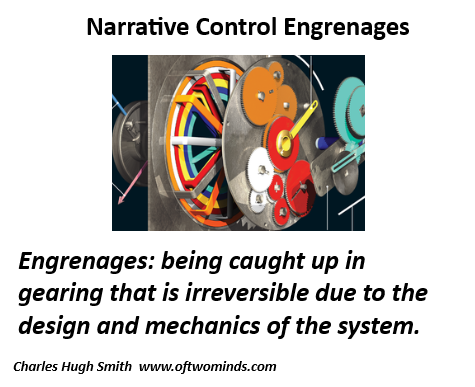 This enforcement of false-choice narratives pushes us into Ultra-Processed Life: everything is self-serving artifice, but pointing this out brings trouble, so we go along with the charade. There's no meaning in the narrative other than enforcing compliance to what's on the agenda of options, which are all false-choice binaries: would you choose to be a Good Person or a Bad Person? Hmm, that's not much of a choice, is it?