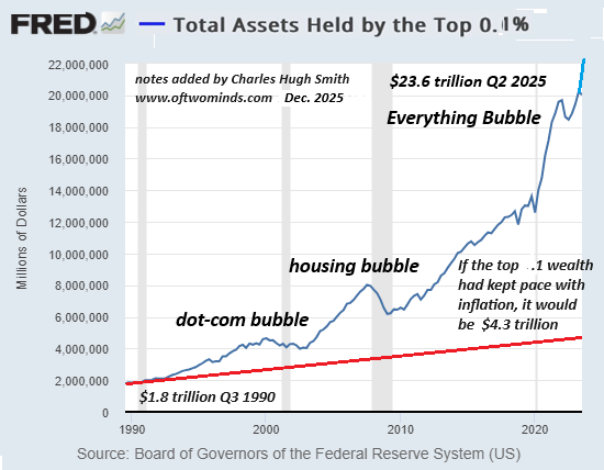 These mechanisms enable not just classic "divide and conquer"--prying apart populations into warring camps that see each other as the "enemy," enabling easy control of the entire distracted, misdirected populace--but the setting of contexts, agendas and priorities--establishing the limits of what's viewed as possible and positive in ways that benefit those holding centralized power.